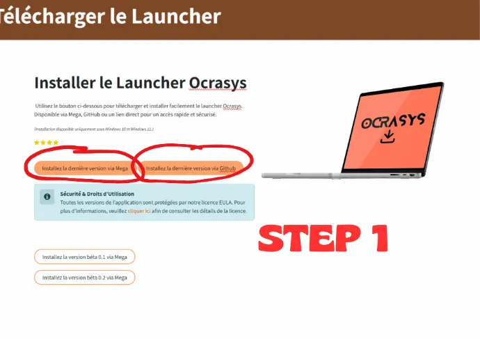 Utilisez le bouton ci-dessous pour télécharger et installer facilement le launcher Ocrasys. Disponible via Mega, GitHub ou un lien direct pour un accès rapide et sécurisé.