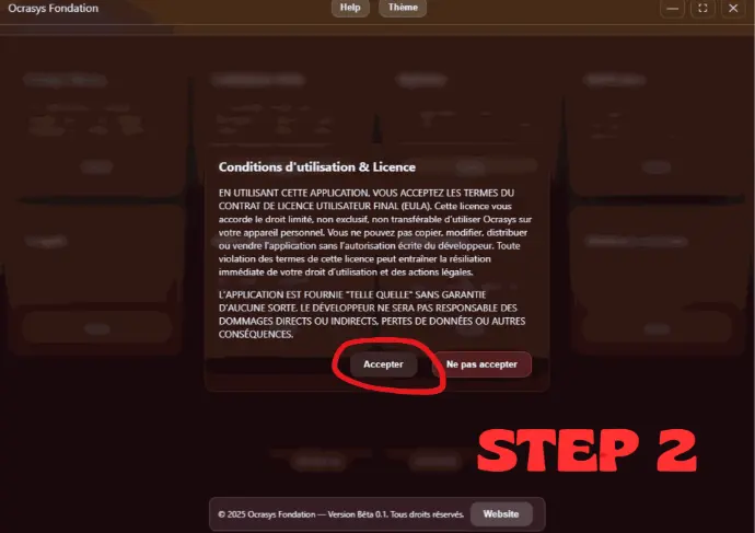- Lisez attentivement les conditions d’utilisation et cliquez sur Accepter pour continuer.